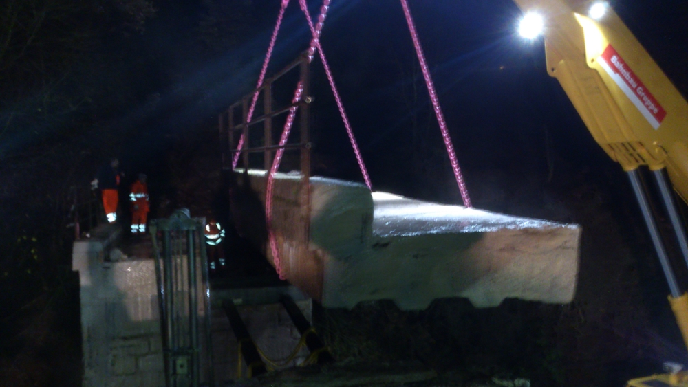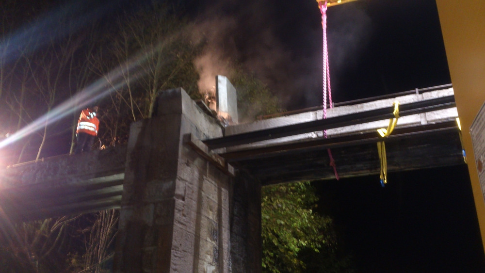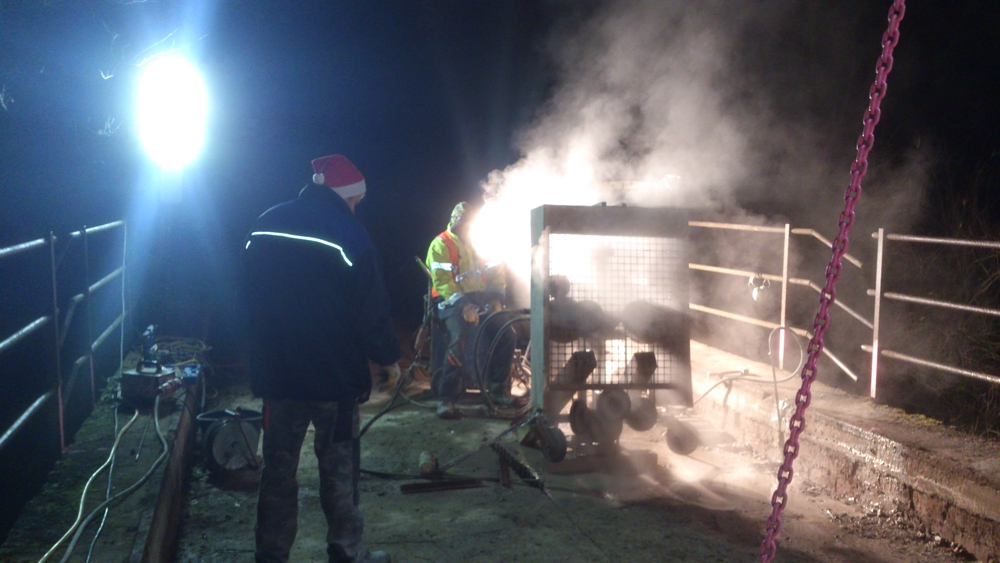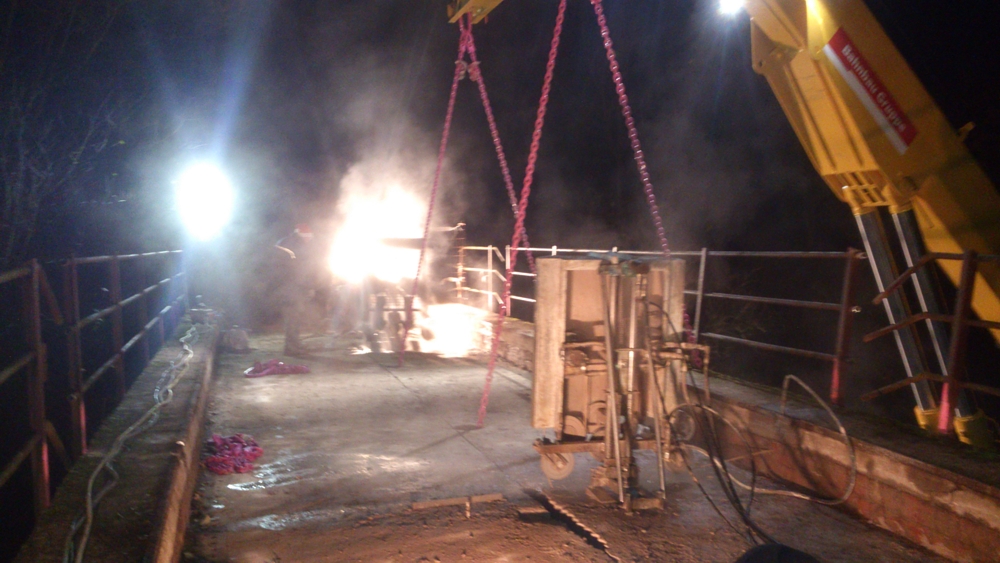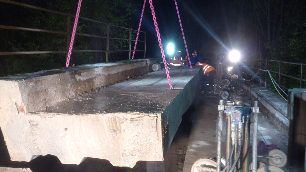Mit der Seilsäge lassen sich auch grosse Stahlbetonquerschnitte zuverlässig trennen. Dadurch können Brückenteile in transportable Abschnitte zerlegt und anschliessend fachgerecht entsorgt werden.