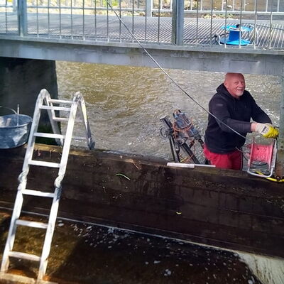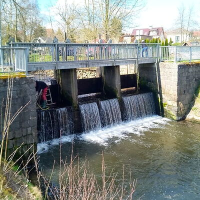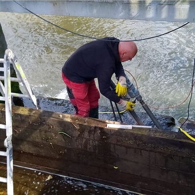 Kernbohrungen als Probebohrungen in Stahlbeton im ø 60 mm  breit und 4,00 m tief in den Wehrkörper in Hohenkirchen / Thüringen.