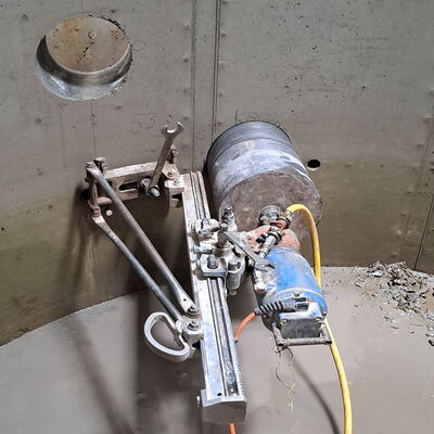 Ausführung Kernbohrungen im Rahmen des Projektes Regenüberlaufbecken in Weimar. Kernbohrungen Durchmesser 400 Millimeter.